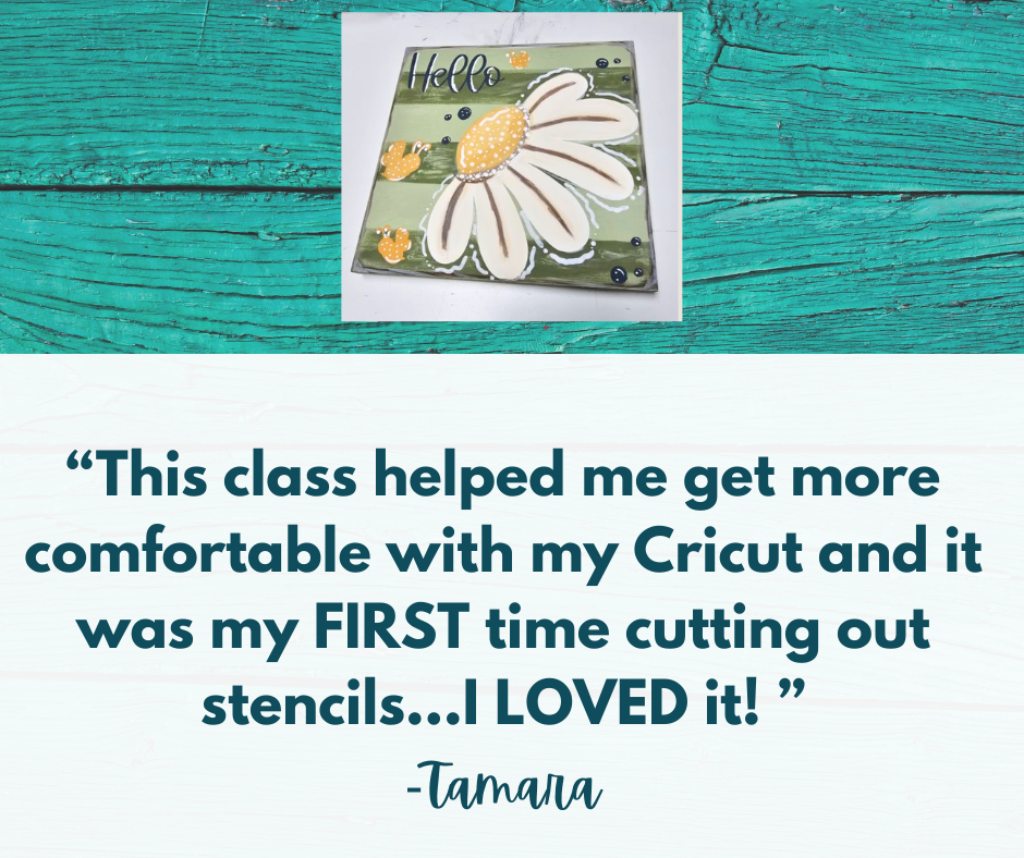 I am passionate about teaching women how to use their Cricut machines to create gorgeous stenciled signs and decor for their homes, to give as gifts or even to sell. Â