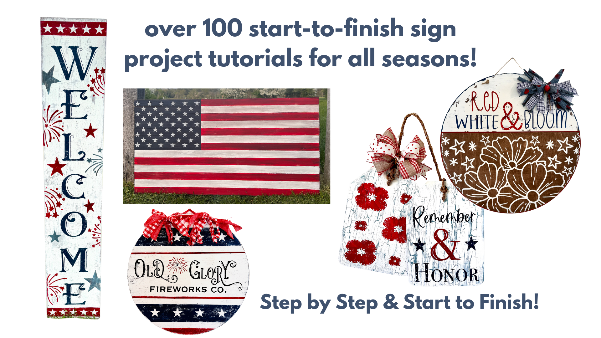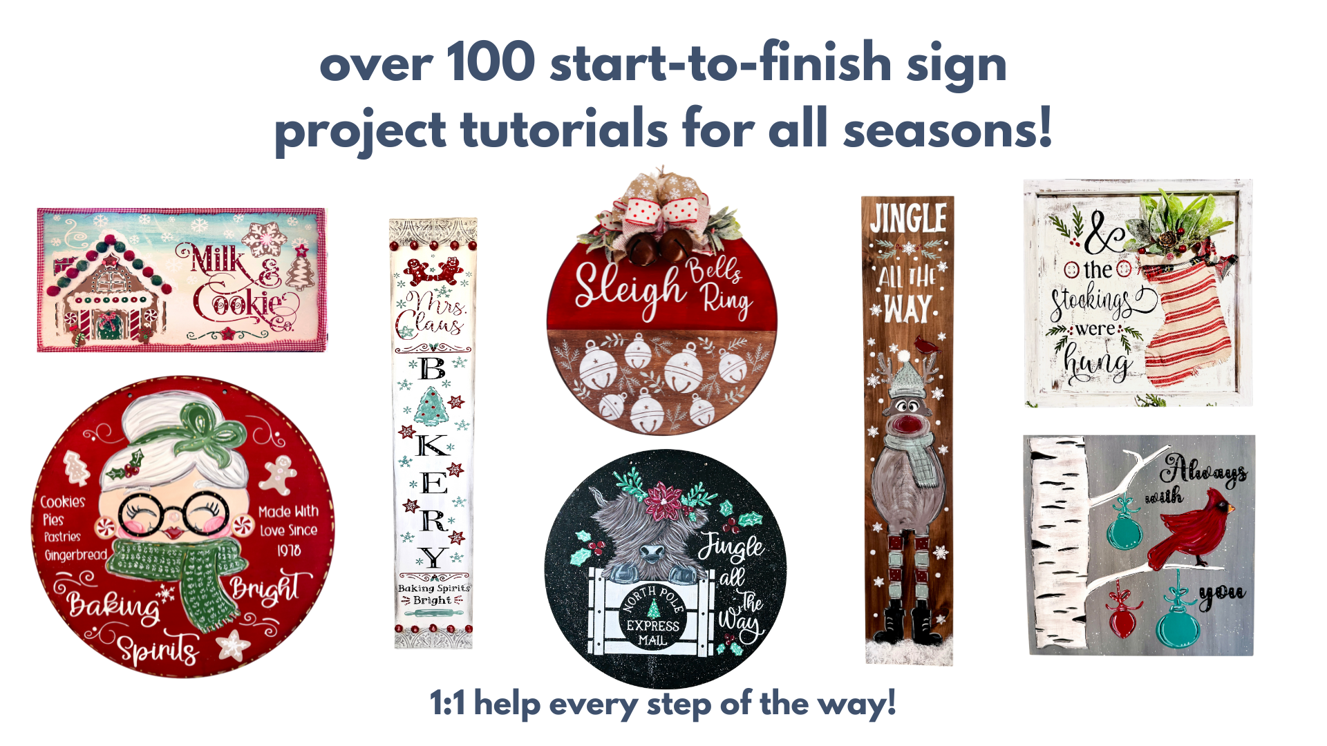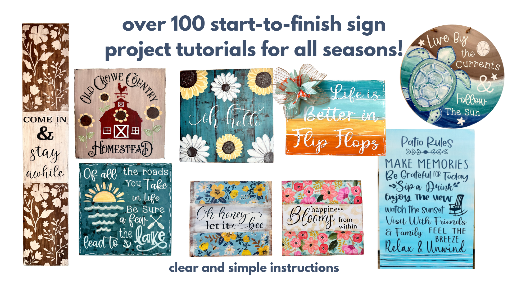 - Over 100 start-to-finish sign project tutorials with complete supply lists and svgs valued at $1497